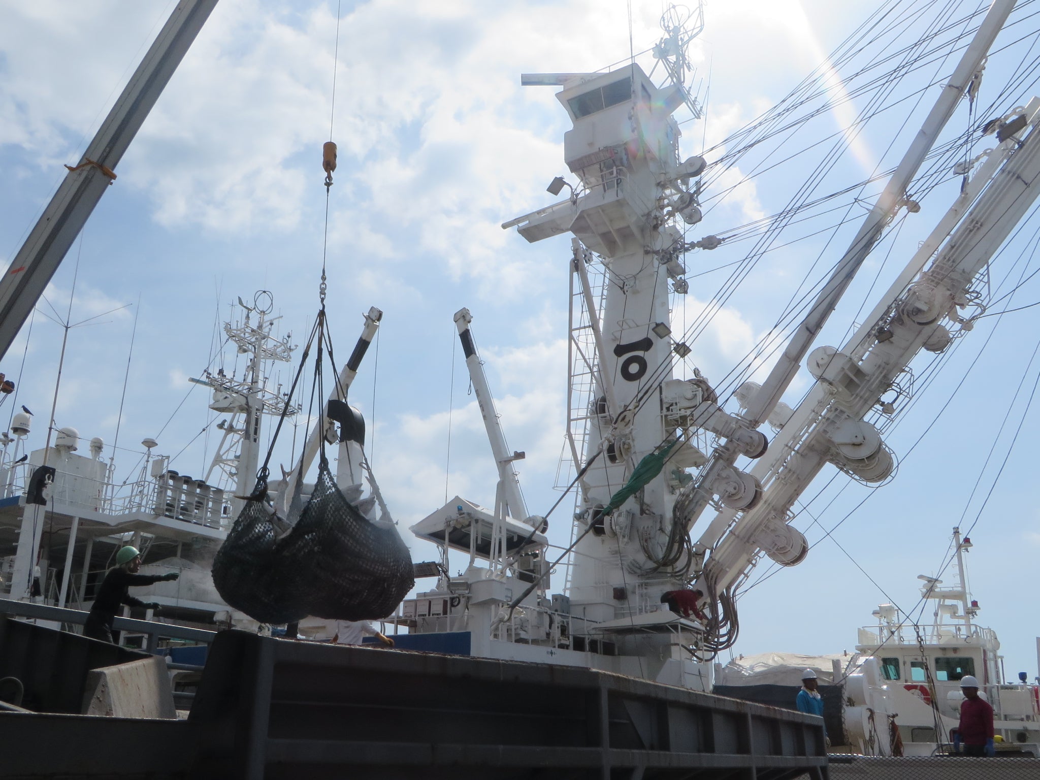 自社で操業している漁船で、とれたて鮮度のまま帰港して水揚げ