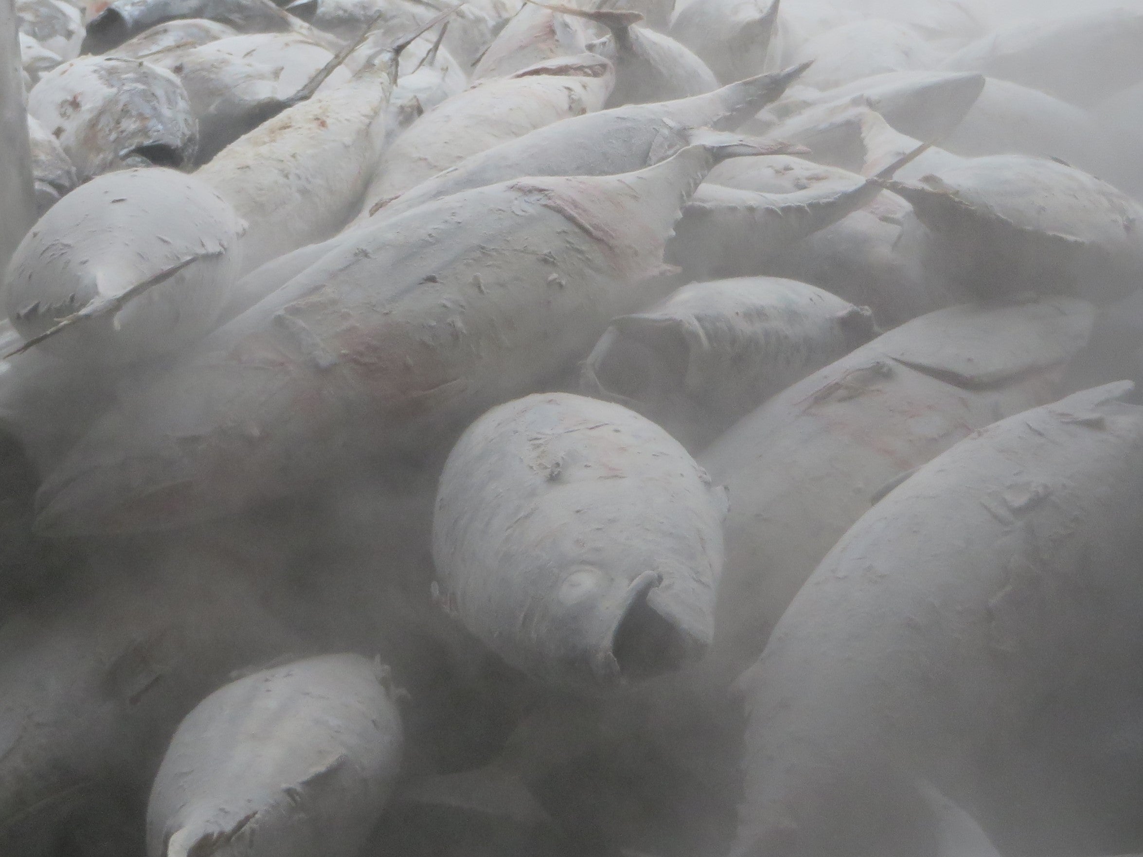 流通や保管は-40°C以下の超低温で管理し、加工直前までその温度を保つからこそ獲れたての鮮度でお届けできるのです。