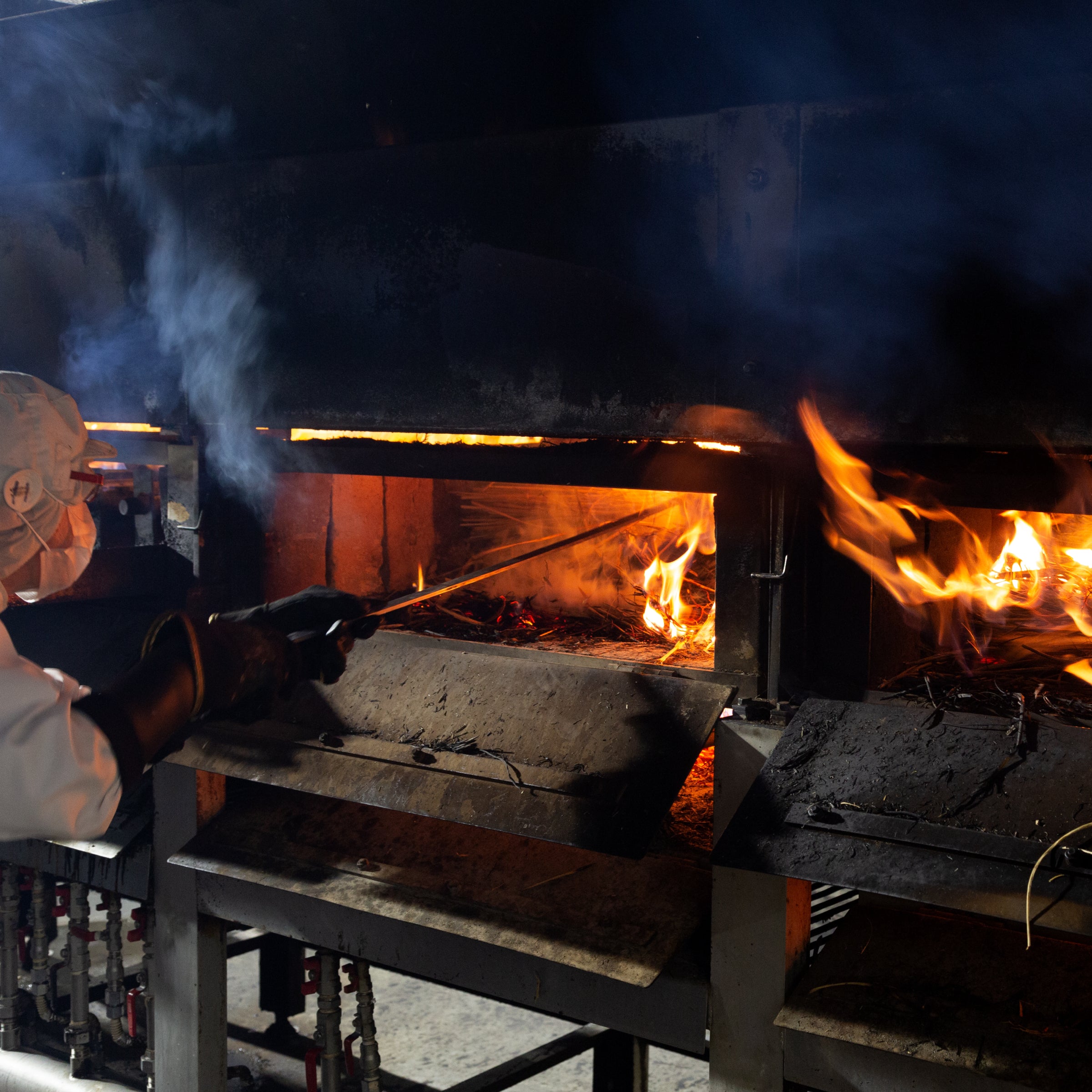 通常品よりもわらを増量し時間をかけてじっくり焼き上げる製法を“鬼焼き”と呼んでいます。