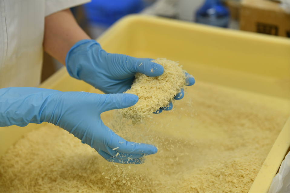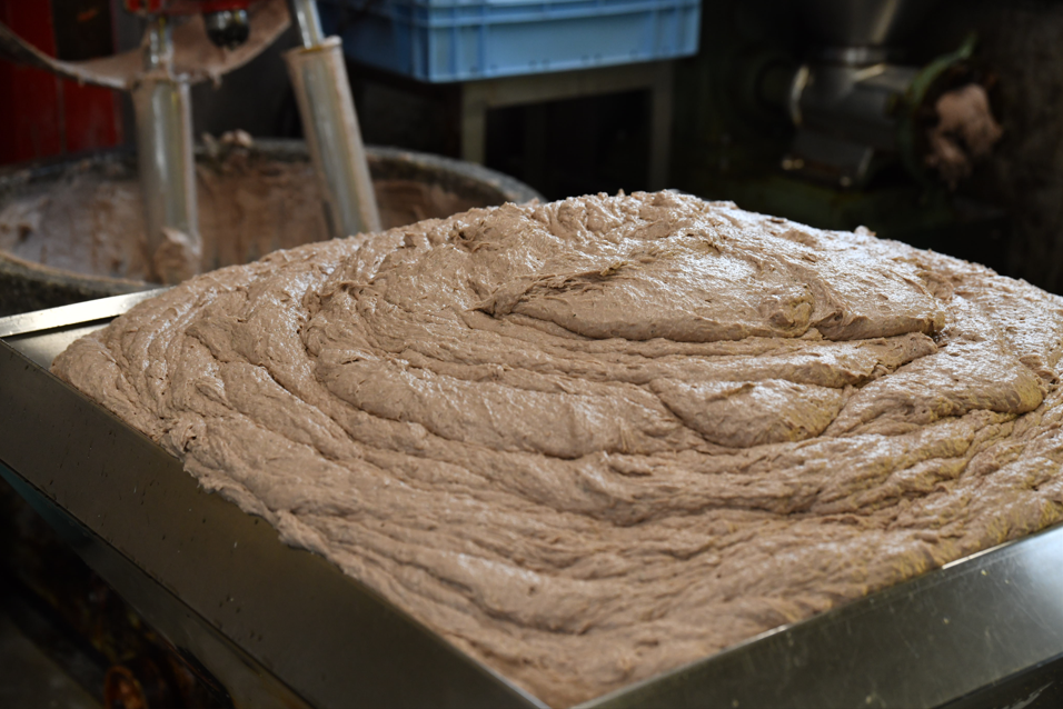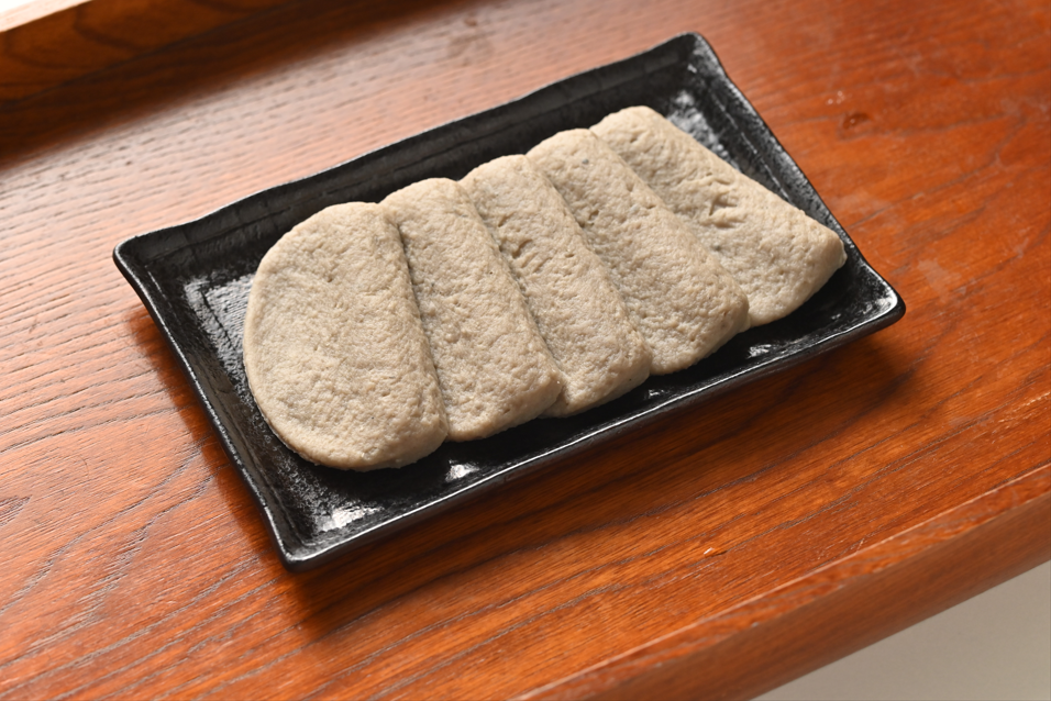 通常さばのすり身だけではパサつきを感じるのに対し、かねいわ商店の黒はんぺんはタラのすり身を一緒に加えて製造することで、他にはない肉厚でジューシーな黒はんぺんに仕上げています。