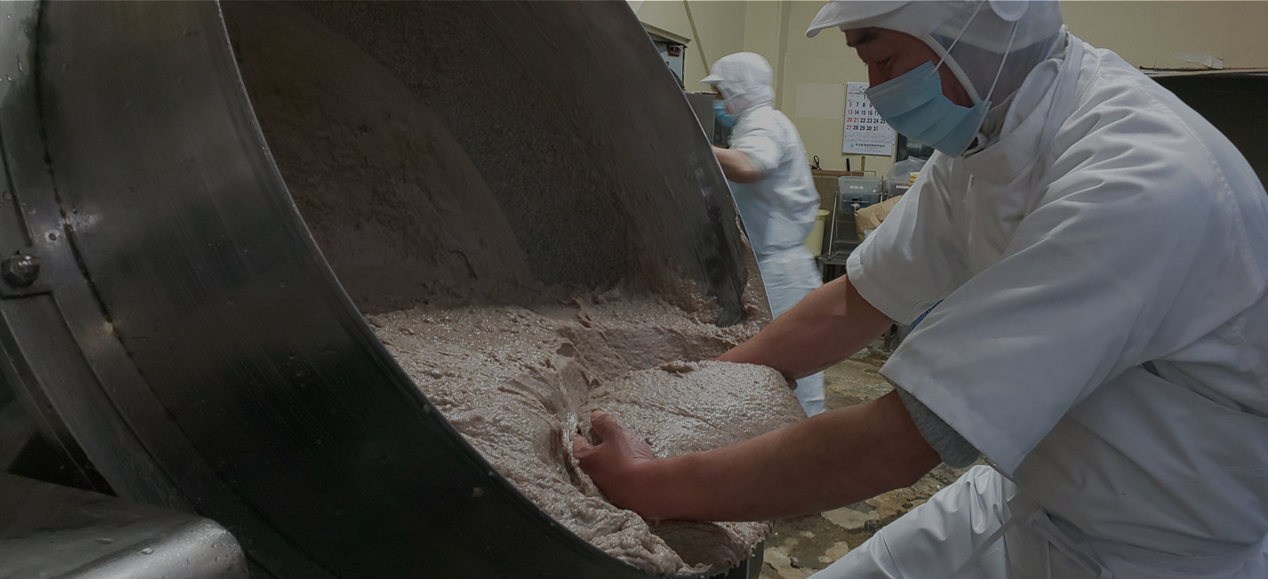 「塩」は、練りものづくりにおいてとても重要です。特に、弊社は昔ながらの石臼づくり製法により、「塩摺り」という工程で旨みと食感をつくり出しています。